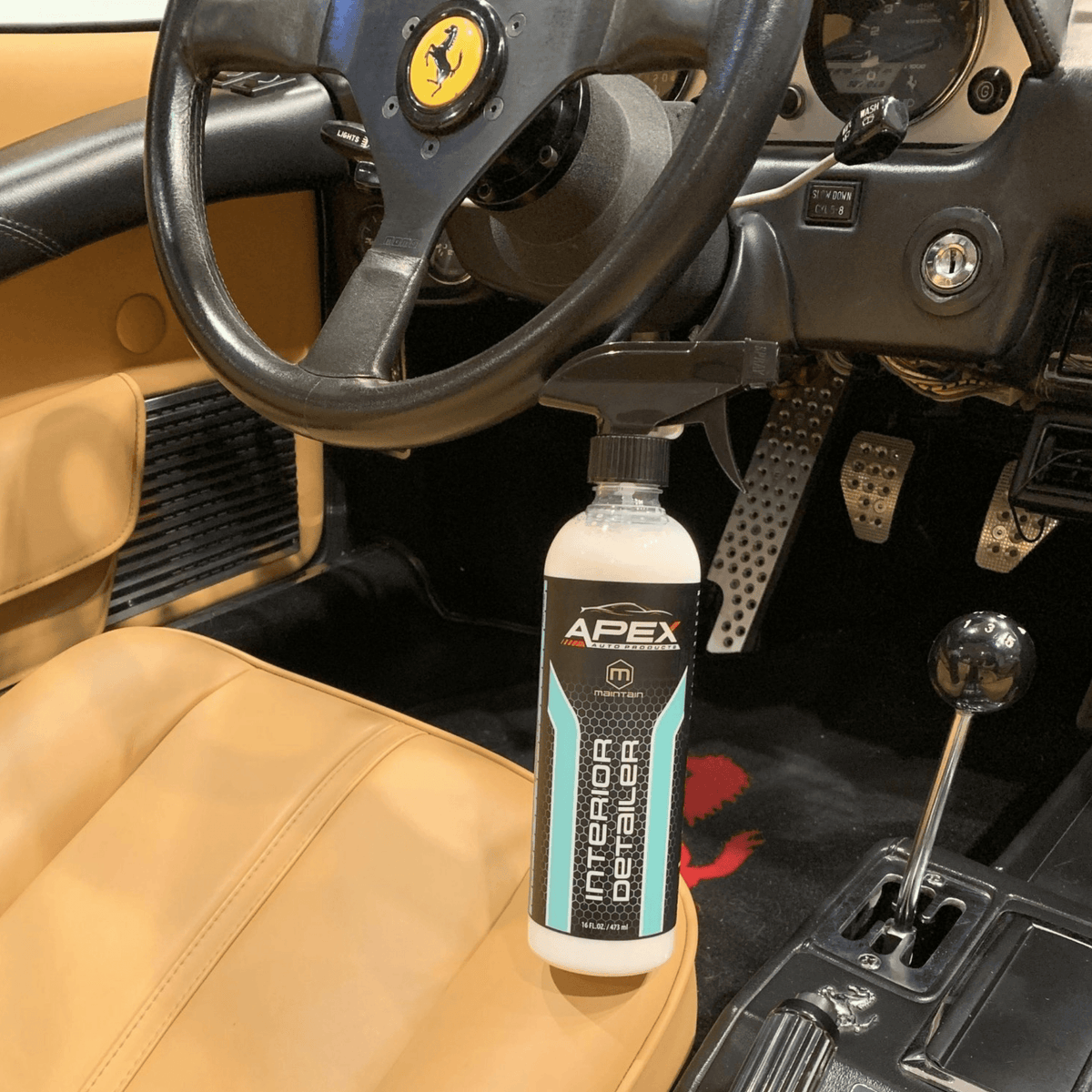 Here's a tip: avoid using it on Alcantara, upholstery, glass, or infotainment screens. For more extensive cleaning needs, turn to APEX INTERIOR AND LEATHER CLEANER.