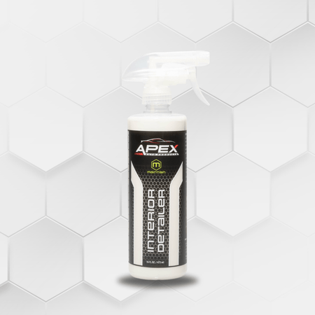 Discover the easiest protection for your vehicle's interior with APEX INTERIOR DETAILER, the perfect solution that not only protects surfaces but also leaves behind a sleek matte finish. Bid farewell to sun damage and unpleasant odors, as our product maintains your car's interior, ensuring it looks and smells fresh.