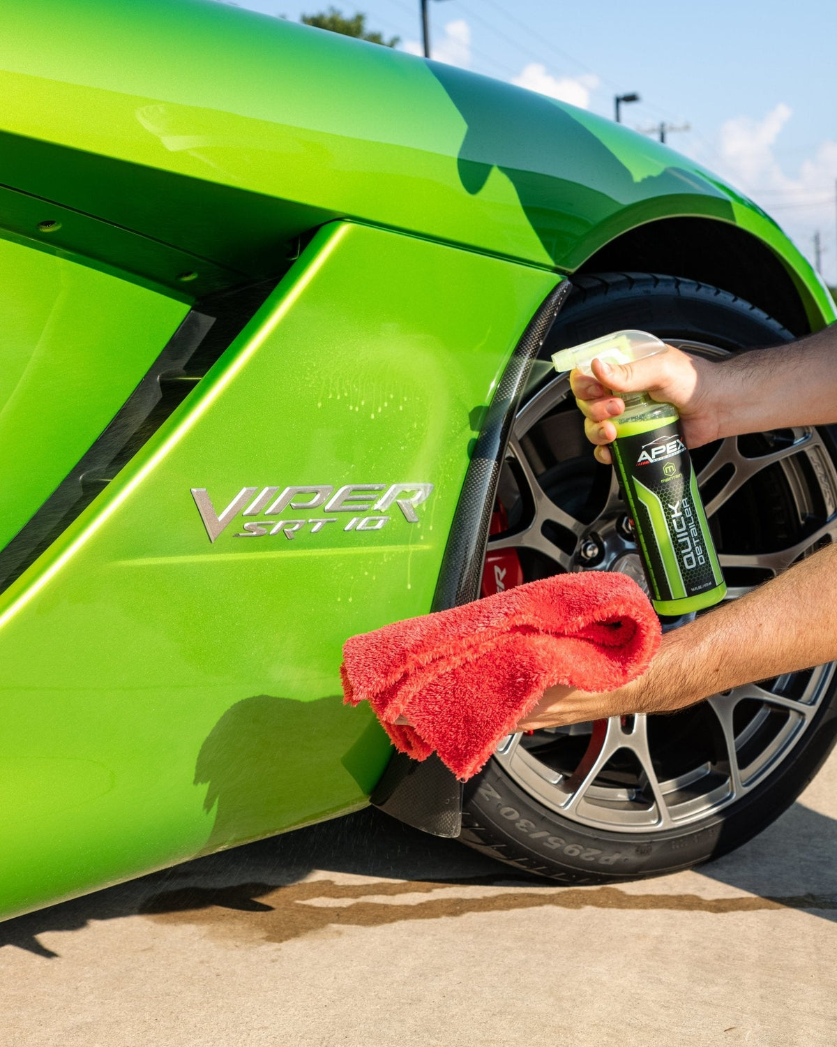 Here at Apex we said, "Not anymore!" and got to work developing a Quick Detailer that didn't streak in the sun. (It get's super hot here in Texas).